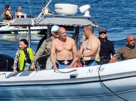 Потапянето на кораба наблюдава и държавният глава Румен Радев, който бе сред първите, които се гмурнаха, след като „Чавдар“ достигна морското дъно. Миналата година президентът Радев се включи в акция по почистване на морското дъно край остров Света Анастасия.